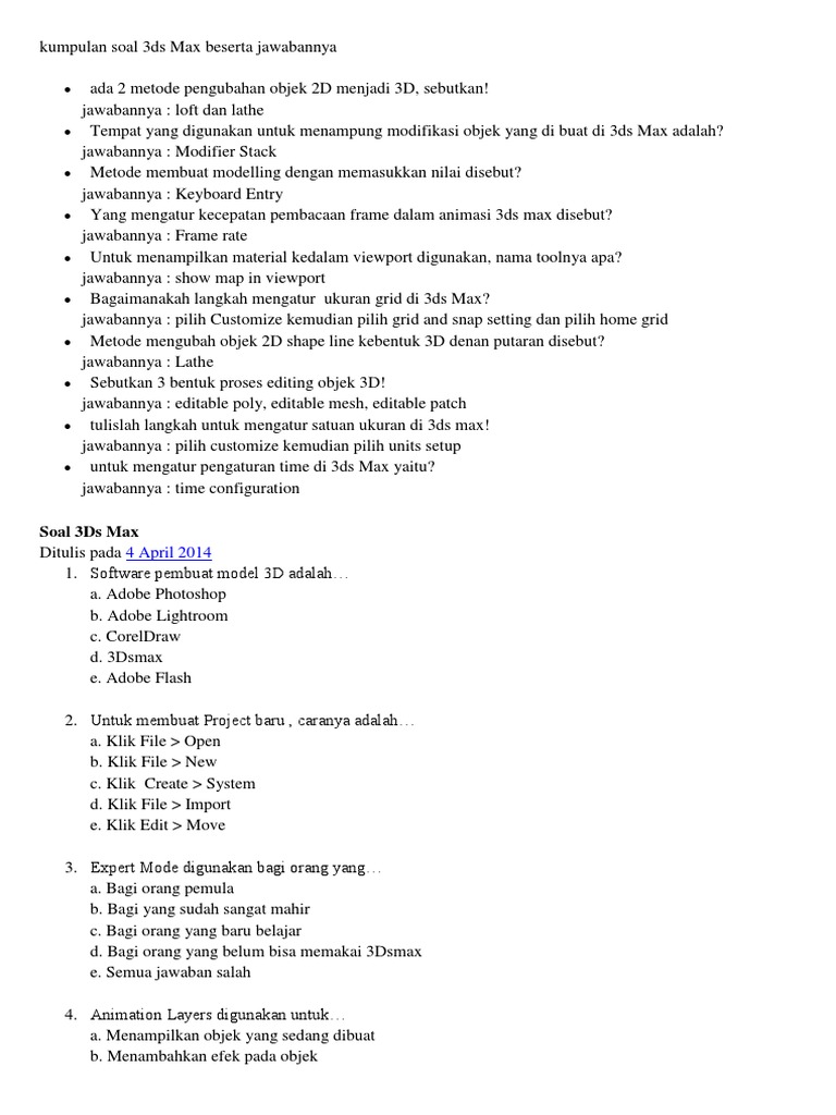 Soal Dan Jawaban Animasi 3 Dimensi Kelas 11 Semester 2 - Soal Dan Jawaban Materi Prinsip Prinsip Animasi Jawabanku Id / We did not find results for:. Soal dan jawaban animasi 3 dimensi kelas 11 semester 2. Maybe you would like to learn more about one of these? We did not find results for: Check spelling or type a new query.